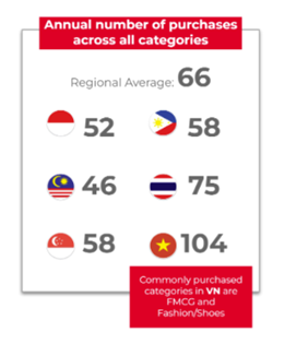 越南一半人口都在 35 岁以下,人口结构年轻化,网络普及率高,社交媒体在当地使用率也很高,使用人数占总人口数的 73.7%。TikTok 入驻越南后发展迅速,约 77.28% 的越南网红活跃在 TikTok 上,是东南亚地区网红活跃度最高的国家。因此,越南人民对社交和娱乐化购物模式有很大热情。新加坡物流供应商 Ninja Van Group 及其母公司 DPD Group 发布的跨境电子商务研究显示,越南跨境网购平均量在东南亚高达每年 104 笔,远高于其平均水平 66 笔。