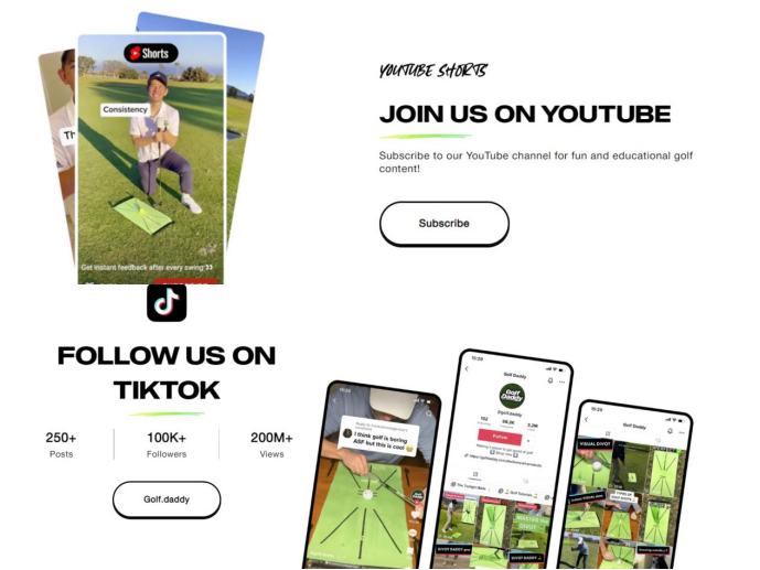 “golf.daddy”除了在海外社媒上做引流以外,还建立了专属独立站,结合节点做品牌促销活动,将在 TikTok、Instagram、YouTube 等社交媒体上流量吸引到独立站,成功“变现”。
